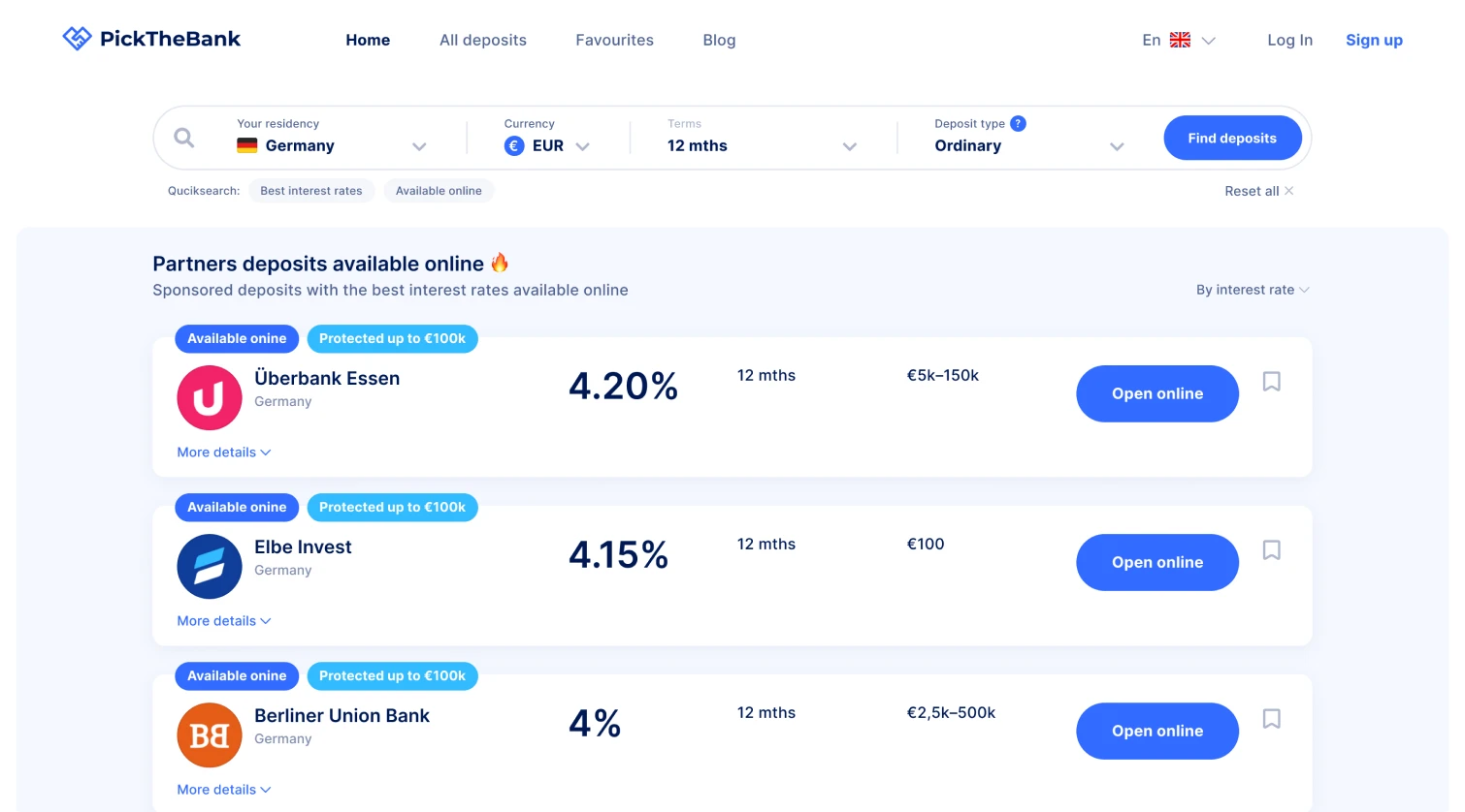 Comparison engine for fixed deposits, savings accounts, and demand accounts
